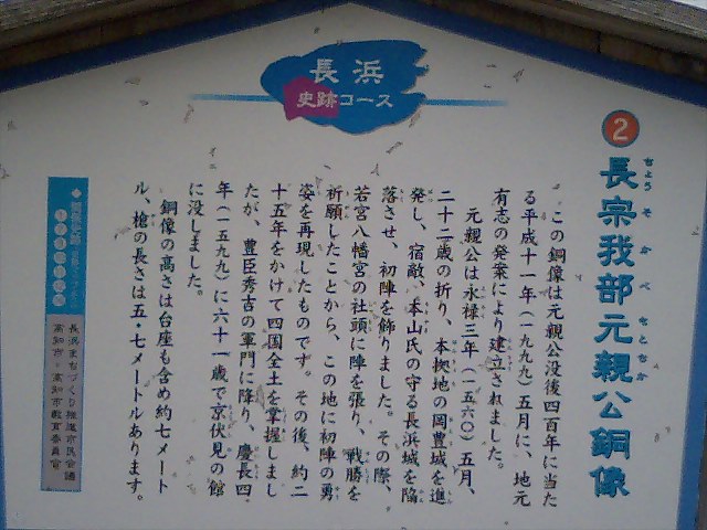 はりまや橋より車で15分程。桂浜へ向かう途中にある若宮八幡宮の参道に、長宗我部元親公の銅像はあります。